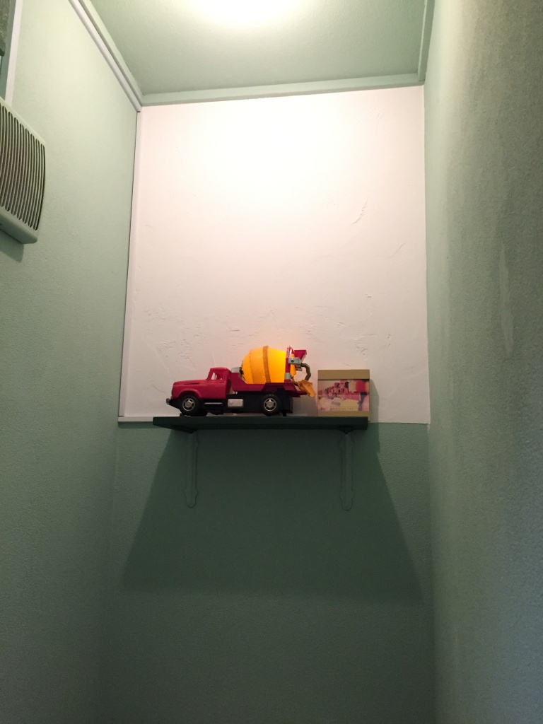 *不思議なアート作品が展示されたプチギャラリーのトイレ